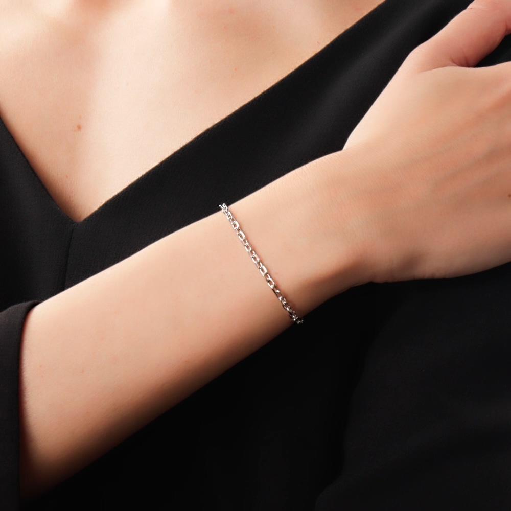Отличный браслет, не плоский. Все грани блестят. Толстенький, хороший вес. Хорошо и с часами , и в сете. И просто с подвеской👍 Рекомендую!