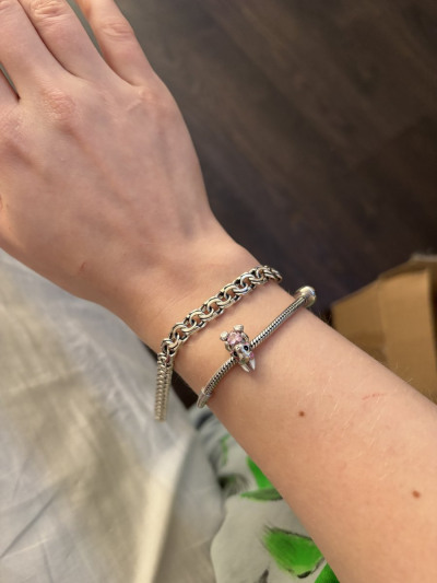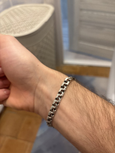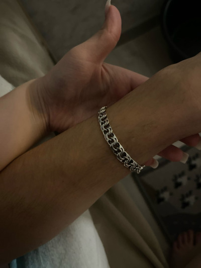 Думала будет меньше по объему,на деле оказался ,,мужицкий’’ крупный браслет,на мужчине будет красиво смотреться. Приобрела по новогодней акции. Выбор был между другим украшением, но это намного лучше. Если хотите порадовать парня/ папу /друга,то самое то,несильно затратно и при этом выглядит очень достойно,в целом покупка выгодная. У меня худенький муж,брала 19 размер, до это носил 20 ,но будто бы большеват(хотя тут кому как нравится), у меня на фото на руке тоже 19 с зайцем,хотя ношу 17. В общем, выглядит достойно,своих денег однозначно стоит! Заказывала онлайн,привезли за пару дней ,все ок