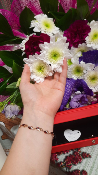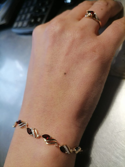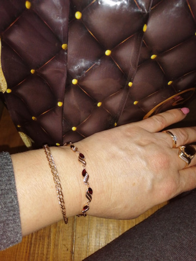 Давно хотела приобрести браслет с гранатом. Были у меня и серьги, и кольцо, и подвеска с гранатом, а вот браслета не было. Решила заказать через приложение в телефоне. Очень долго думала сомневалась, но браслет превзошел все мои ожидания: давольно тяжеленький, не пустотелый, на руке смотрится красиво. Я довольна очень.