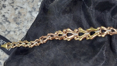 Шикарный браслет, смотрится объемно, 2 цвета золота, хорошее дополнение к любым украшениям.