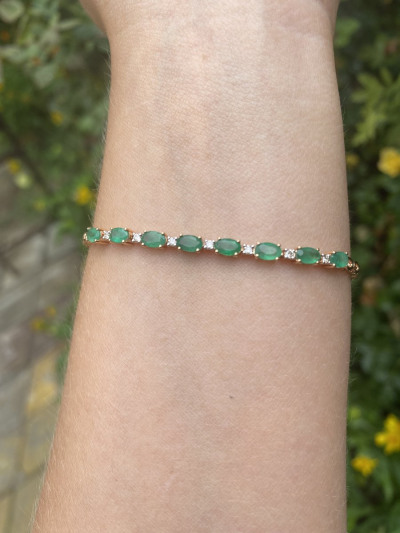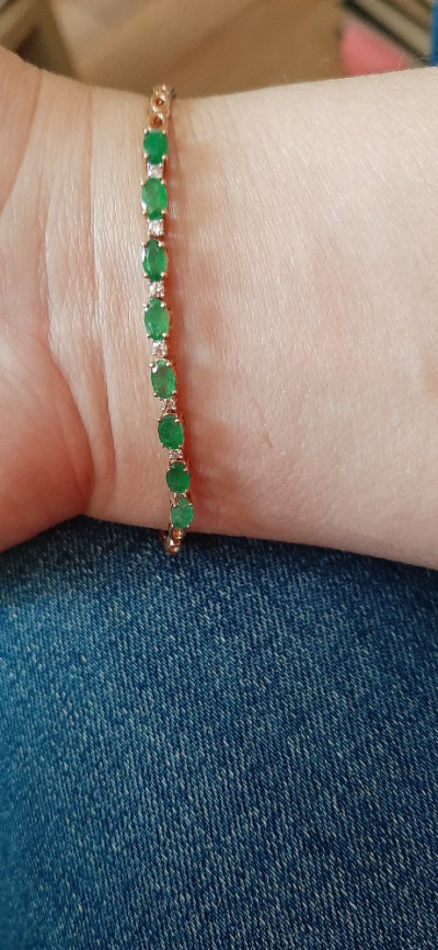 Браслет сразу подкупает своей сдержанностью и изысканностью. Сочетание изумрудов с бриллиантами обрамленное золотом вызывает ощущение свежести, дуновение весеннего ветерка, нежного запаха ландышей. При всем своем лаконизме браслетик необыкновенно нежный и женственный!
