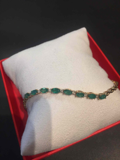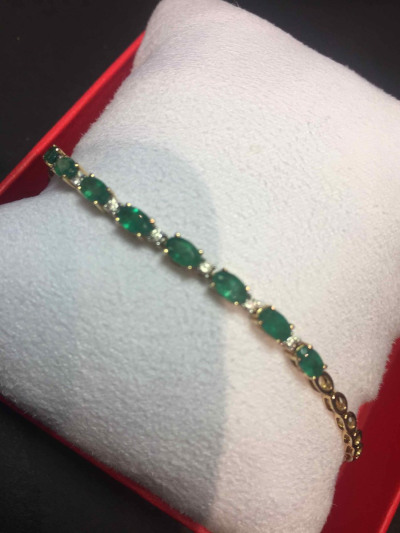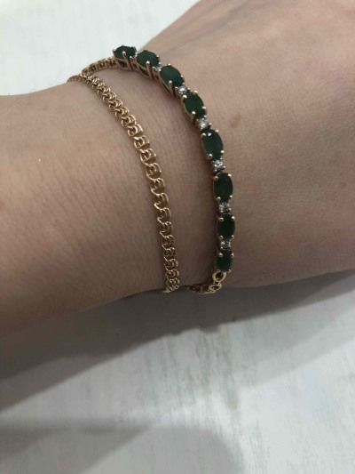 Золотой браслет с бриллиантами природными и изумрудом природным