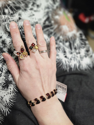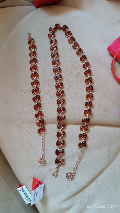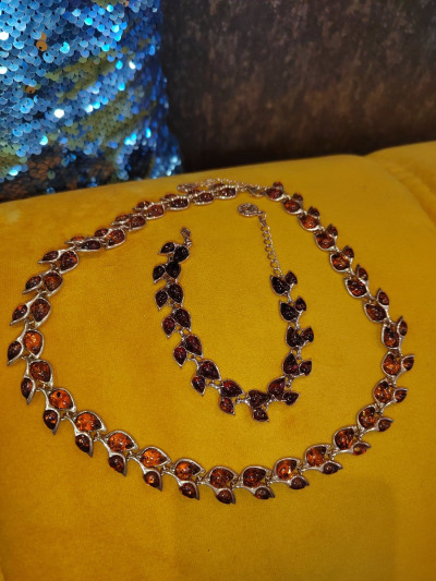 Серебряный браслет с янтарями природными