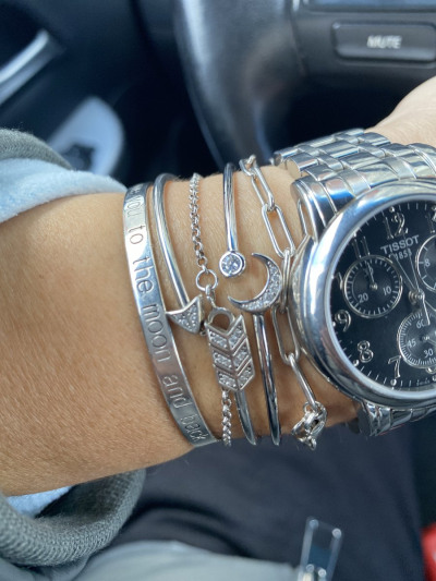 Браслетик супер)мне очен нравится)особенно в комплекте с моими)люблю носить много браслетов ❤️p.s все браслеты от санлайт)