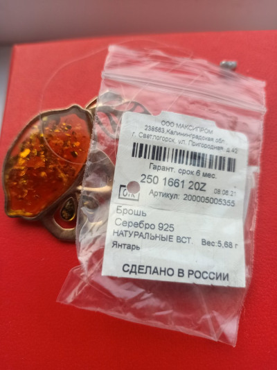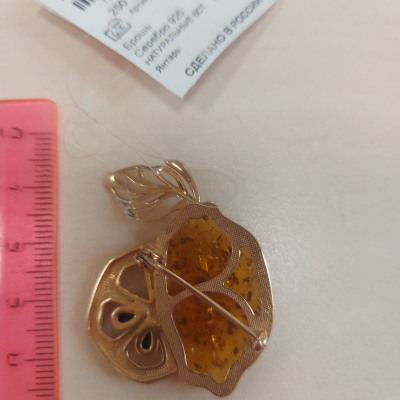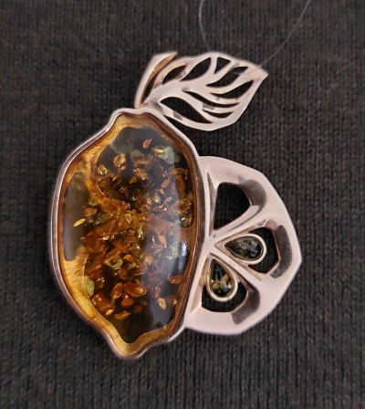 Давно хотела купить эту брошь. Вот взяла. Жёлтый и зелёный янтарь на солнце просвечивают. Очень красиво. Оригинальная задумка. Очень довольна покупкой. Вставки натуральные.