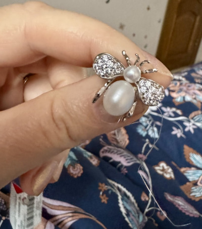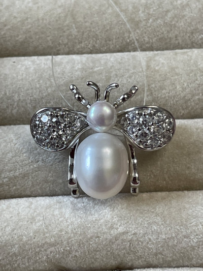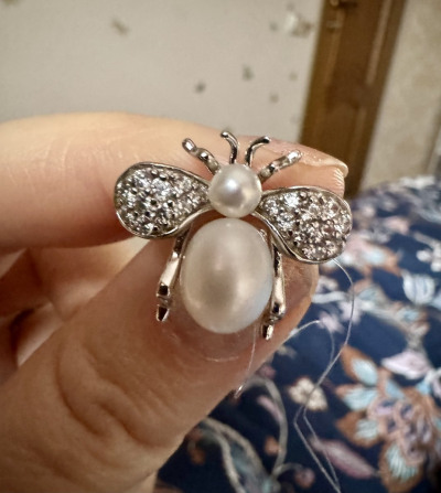 Нежная и привлекательная пчелка с жемчужиной и фианитами Смотрится очень нежно и привлекательно