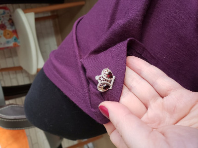 Форма броши хорошая, не цепляется за одежду. эффектная