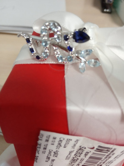 Серебряная брошь с фианитами, топазами природными и сапфирами природными