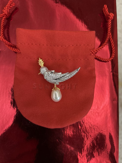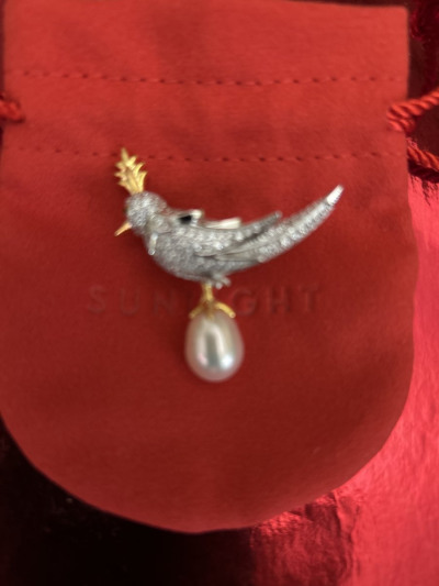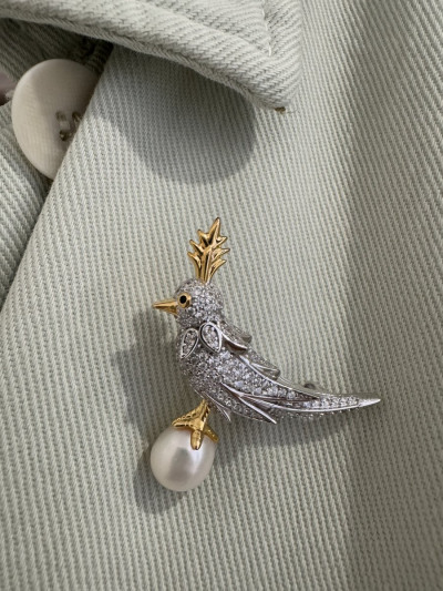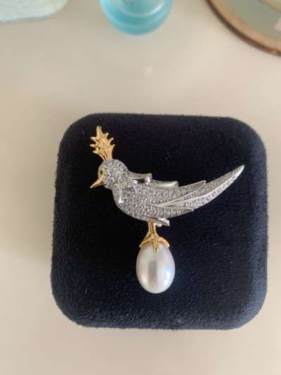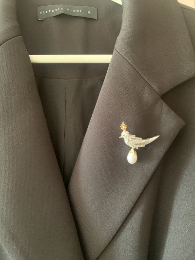 Милая , прелестная пернатая 🤗 я ее назвала Тиффи 🤩 смотрится шикарно и на кофточке и на пиджаке 👍🏼 самое главное не провисает 🤗🤗