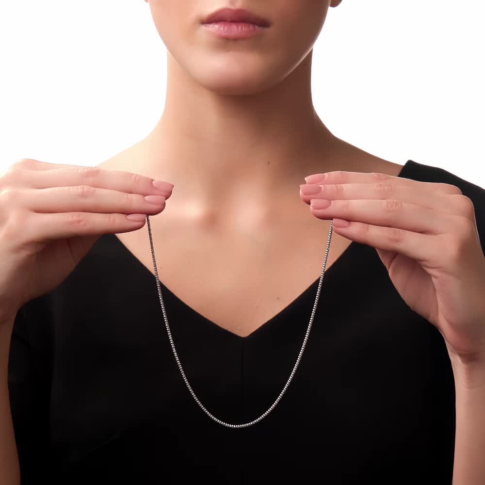 Достойная цепочка, ничего лишнего, не отвлекает от подвески, но и не остаётся незамеченной.