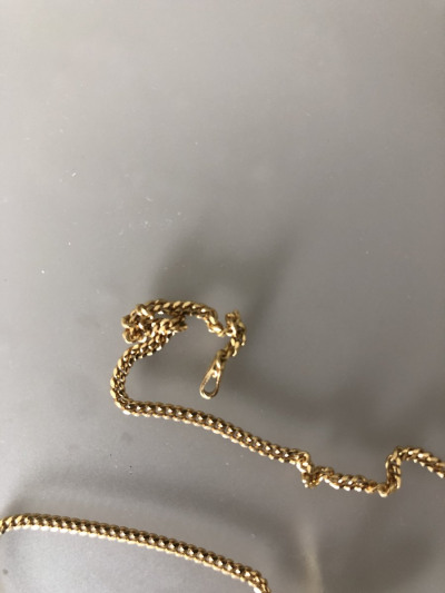 Цепочка красивая. Ушко тоненькое, подойдет для многих кулонов! Цвет желтый яркий, это надо учитывать.