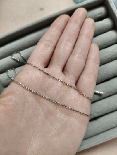 Долго искала простую, но качественную серебряную цепочку, чтобы носить с разными кулонами или одну. Эта модель — именно то, что нужно! Цепочка очень нежная и изящная, но при этом ощущается как прочная и добротная. Замок-карабин удобный и надежный, я не боюсь, что он расстегнется сам. После нескольких недель ношения (не снимая даже в душе) потускнения почти нет, блеск остается. Очень довольна покупкой! Магазину спасибо за честное описание и быструю доставку. Теперь это моя любимая вещь в шкатулке.