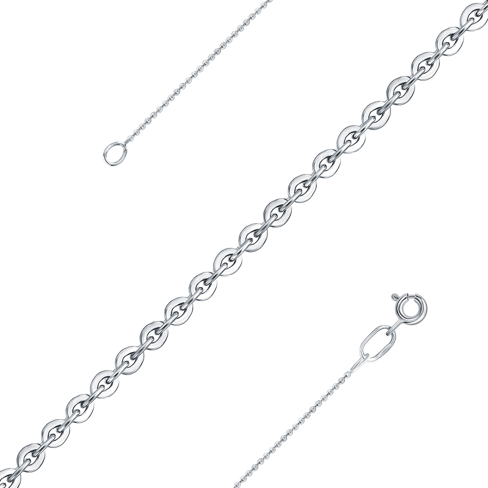 Якорное плетение - настолько надежное, что можно "вешать якорь". Звенья расположены под прямым углом друг к другу, от чего цепь получается объемной и крепкой. Плетение универсально, подходит и женщинам, и мужчинам. Классическая якорная цепь состоит из звеньев продолговатой формы с закругленными концами. Для усиления блеска края обрабатывают алмазной гранью.