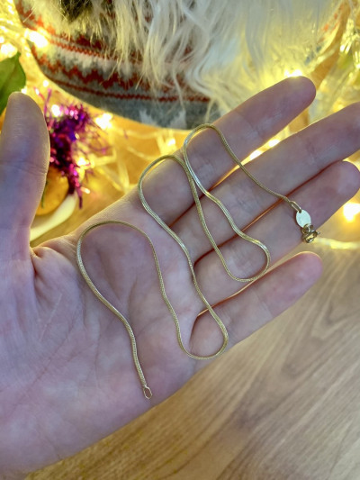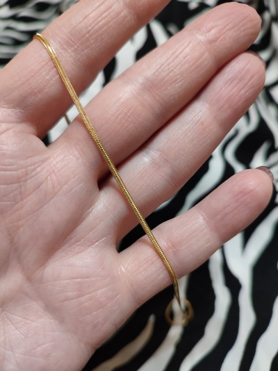 Очень милая жёлтая змейка! Переливается и блестит. Мягкая, хорошо гнётся. С кулоном смотрится 👍