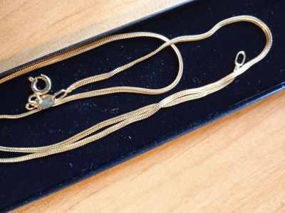 Цепочка из жёлтого золота. Плетение плоское, ломкое.