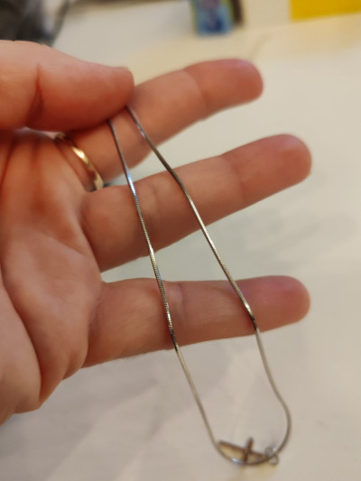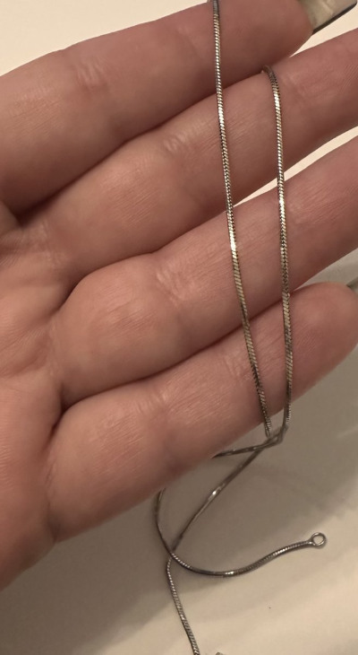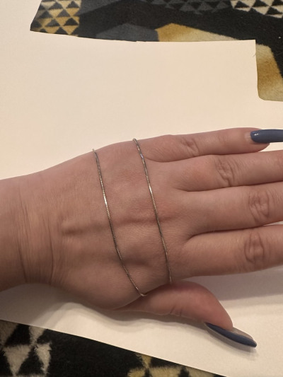 Очень понравилась, очень блестящая, с кулоном маленьким очень подошла. Рекомендую. Толщина средняя, не тонкая не толстая, самое то.