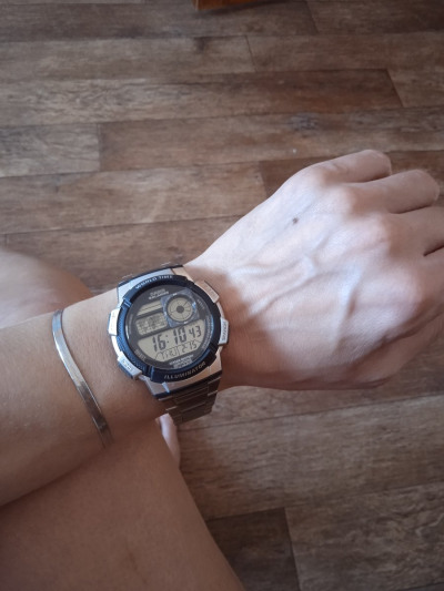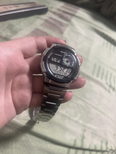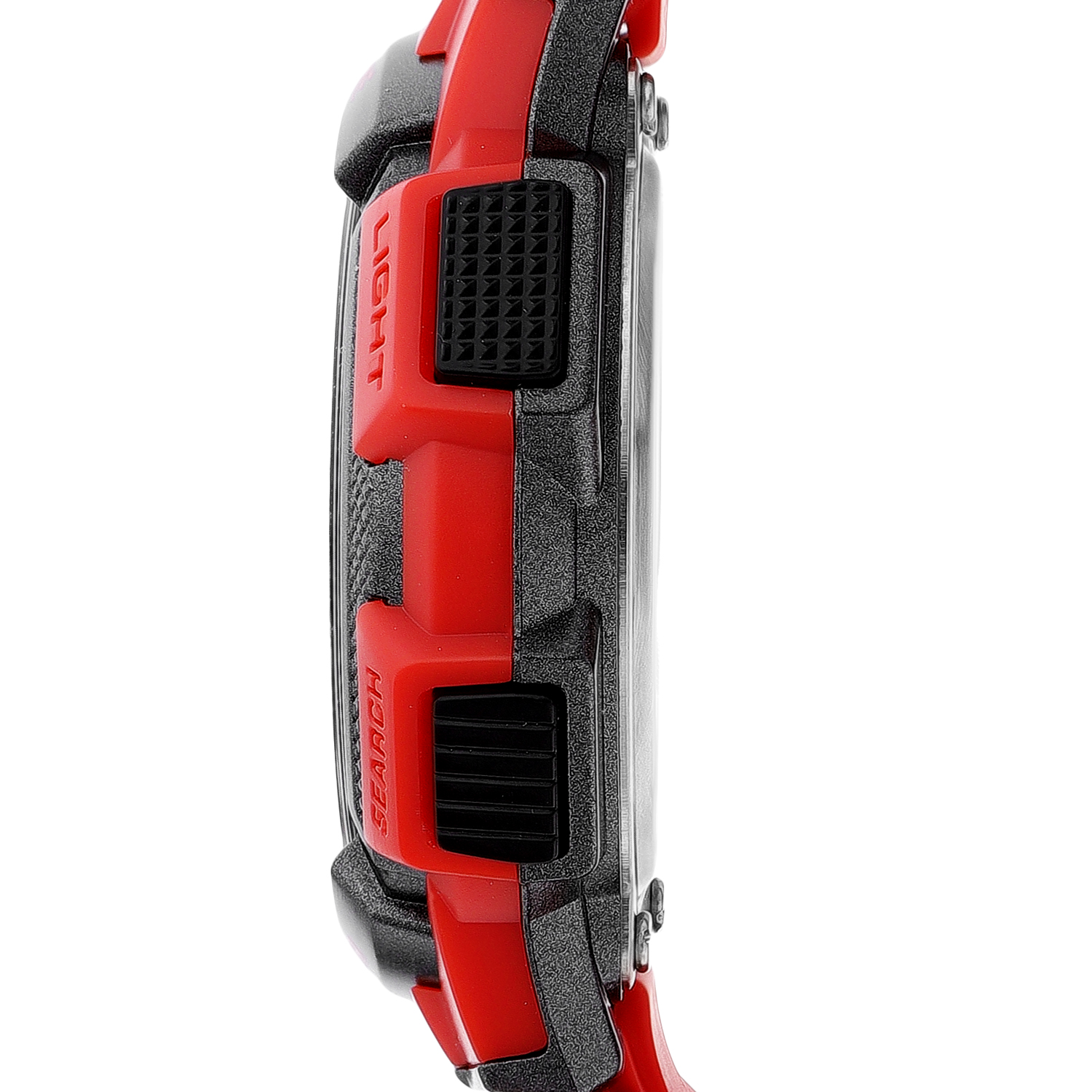 Споритвная мужская модель часов CASIO Collection Men с огромной функциональностью и цифровым дисплеем. Электролюминесцентная подсветка освещает весь циферблат, после отпускания кнопки свечение продолжается еще некоторое время. На электронной части выводится как текущее время, так и режимы таймера, секундомера, будильника. В зависимости от модели добавлена записная книжка или таймер отсчета кругов, либо фаза луны для любителей рыбалки. Высокая водозащита позволяет спокойно нырять и плавать.