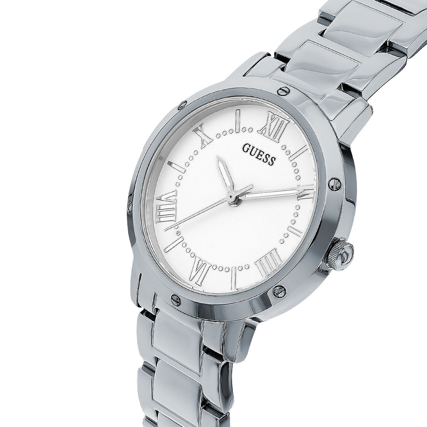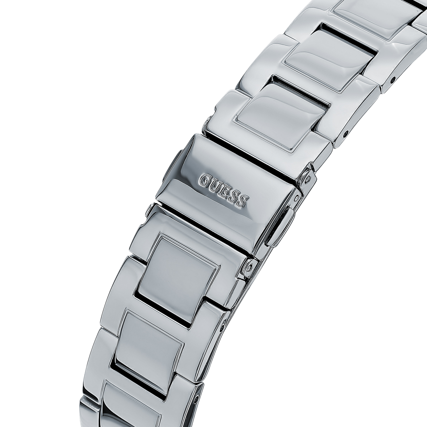 Женские наручные часы GUESS модель GW0404L1 из коллекции GUESS DRESS. Японский кварцевый механизм Y121 SEIKO (TMI) использующий элемент питания SR626SW. Стальной корпус размера 34 мм. Минеральное стекло. Стальной браслет. Водостойкость 3 АТМ (защита от брызг). Остерегайтесь попадания часов в воду. GUESS – лидер в индустрии фешен часов по длительности присутствия на рынке и по ширине коллекции, ежегодно создает более 100 новинок. Компания GUESS Watches, основанная в 1984 году в Лос-Анджелесе (США) как пионер революции, возглавила трансформацию часов из простого инструмента для определения времени в стильный аксессуар. Бренд не боится экспериментировать. Разнообразные формы корпуса, сложно декорированные циферблаты, уникальный дизайн браслетов. GUESS – это про тренды и технологии в мире моды. Это яркие и дизайнерские часы, призванные угодить самым смелым фешн-драйверам и энтузиастам моды по всему миру. Страна-изготовитель: Филиппины. При изготовлении используются только надежные Японские механизмы. ВНИМАНИЕ! Заявленная водостойкость гарантируется только при плотно закрытой или закрученной заводной головке!