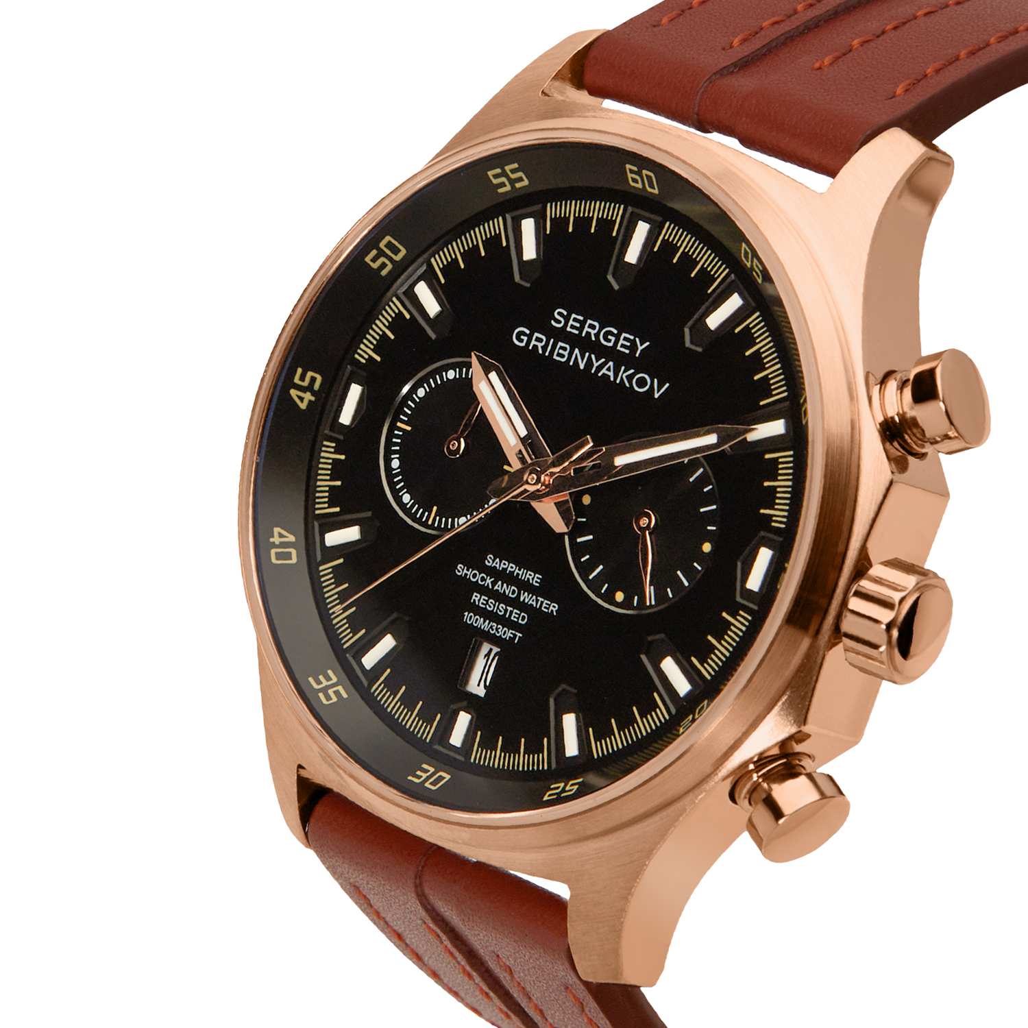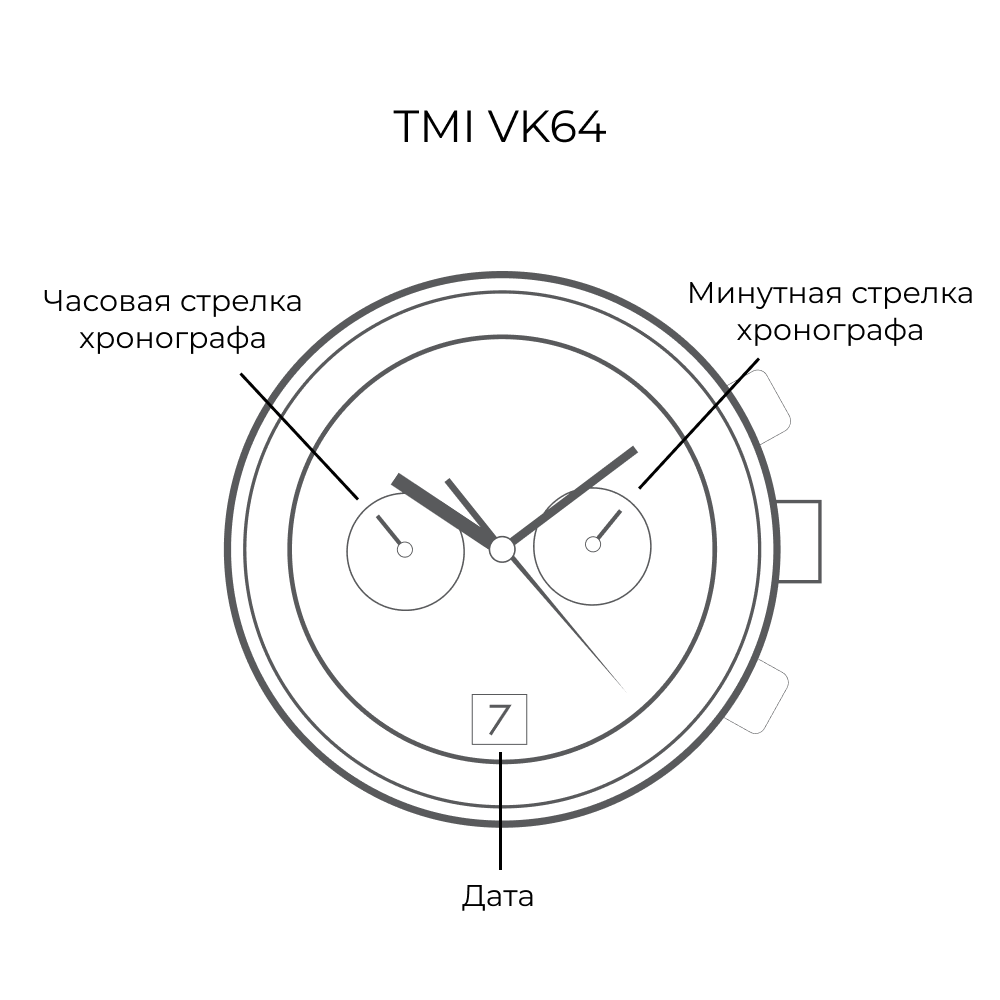 Корпус выполнен из стали 316L, сапфировое стекло с антибликом защищает циферблат от внешнего воздействия. Японский кварцевый механизм TMI VK64 обеспечивает точность и оснащен функциями Водозащита 10 bar (100 m/330 ft)* позволяет плавать в часах.