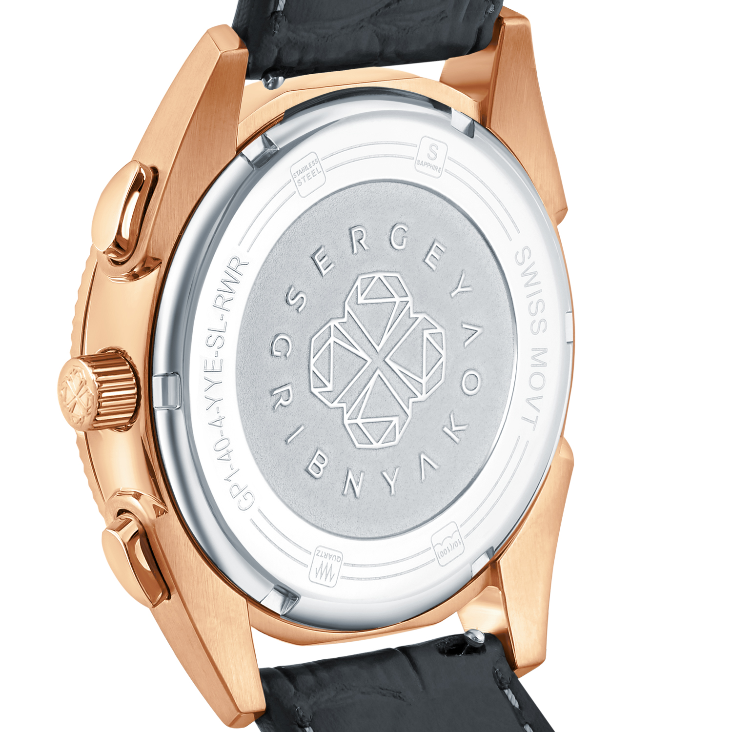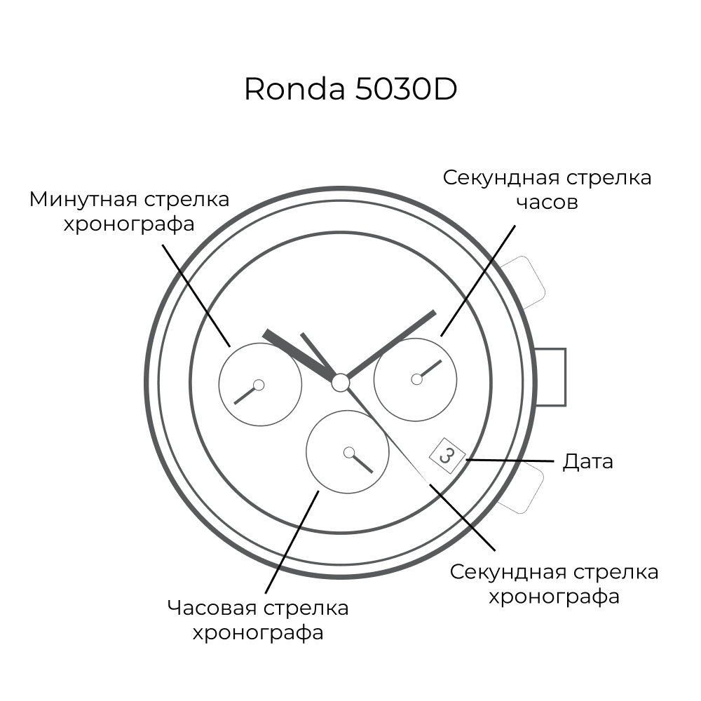 Корпус выполнен из стали 316L, сапфировое стекло с антибликом защищает циферблат от внешнего воздействия. Надежный швейцарский кварцевый механизм Ronda 5030D оснащен функциями времени в 12 часовом формате, секундной стрелкой, датой и хронографом. Водозащита 10 bar (100 m/330 ft)* позволяет плавать в часах.