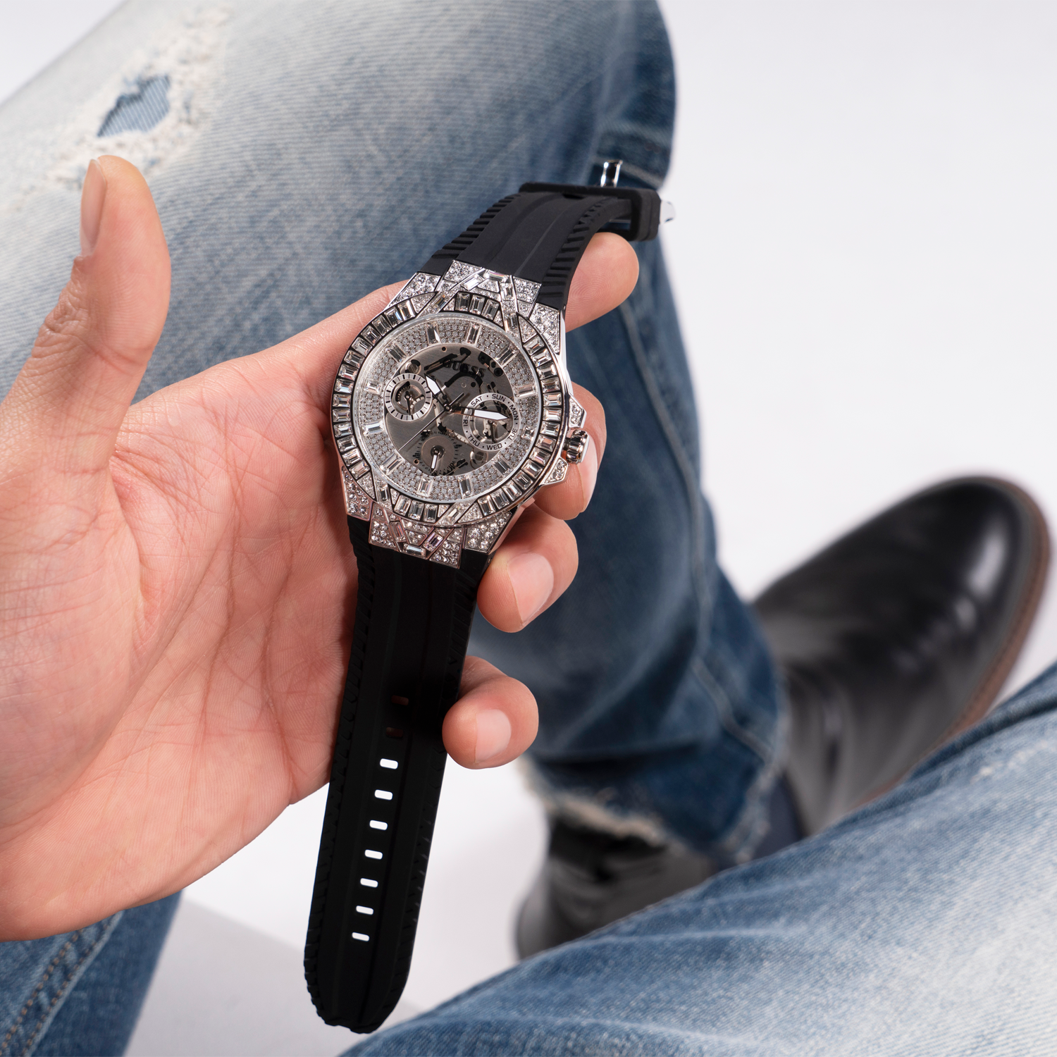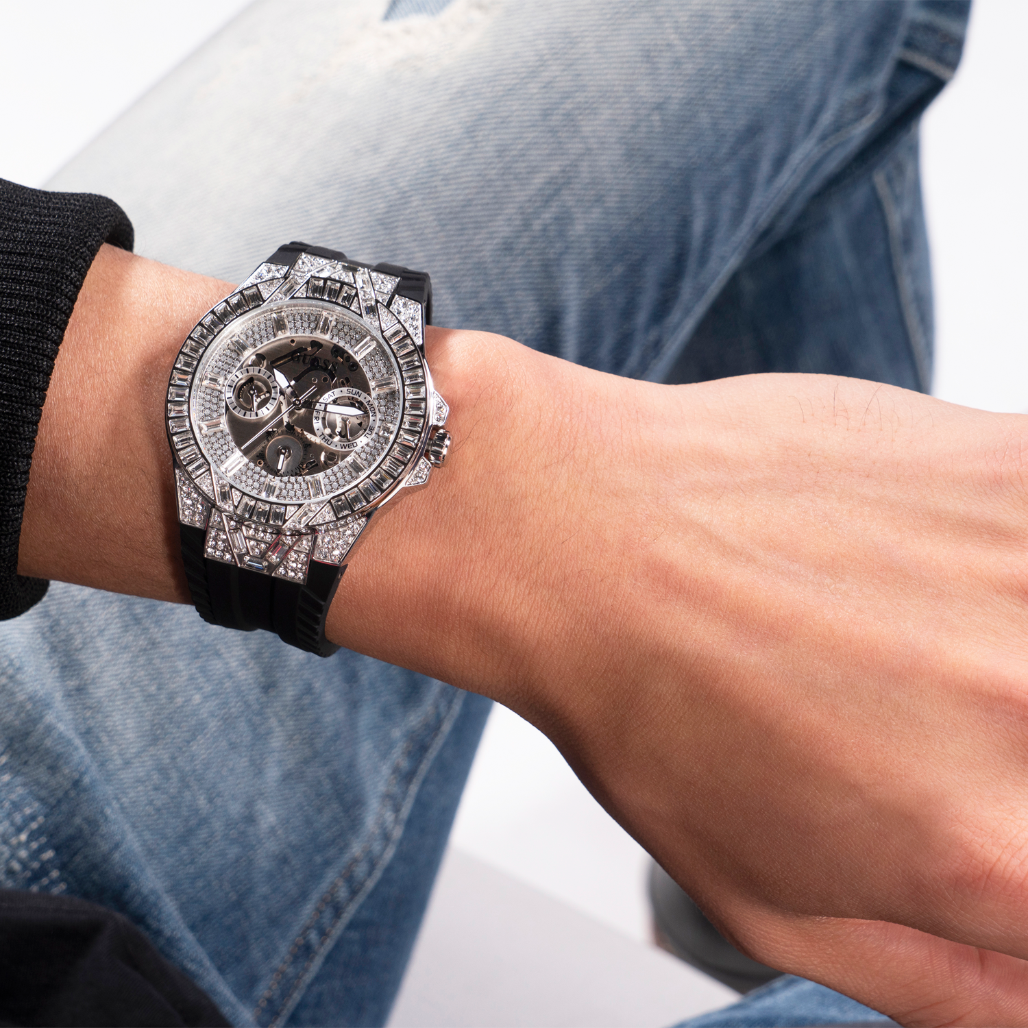 Мужские наручные часы GUESS модель GW0498G1 из коллекции GUESS TREND. Японский кварцевый мультифункциональный механизм VX7JE2S SEIKO (TMI) с вынесенными на отдельные циферблаты датой, днем недели и часовой стрелкой в режиме 24 часа использующий элемент питания SR927SW. Стальной корпус размера 44 мм. Минеральное стекло. Силиконовый ремешок. Водостойкость 5 АТМ (мытье рук, дождь). GUESS – лидер в индустрии фешен часов по длительности присутствия на рынке и по ширине коллекции, ежегодно создает более 100 новинок. Компания GUESS Watches, основанная в 1984 году в Лос-Анджелесе (США) как пионер революции, возглавила трансформацию часов из простого инструмента для определения времени в стильный аксессуар. Бренд не боится экспериментировать. Разнообразные формы корпуса, сложно декорированные циферблаты, уникальный дизайн браслетов. GUESS – это про тренды и технологии в мире моды. Это яркие и дизайнерские часы, призванные угодить самым смелым фешн-драйверам и энтузиастам моды по всему миру. Страна-изготовитель: Филиппины. При изготовлении используются только надежные Японские механизмы. ВНИМАНИЕ! Заявленная водостойкость гарантируется только при плотно закрытой или закрученной заводной головке!