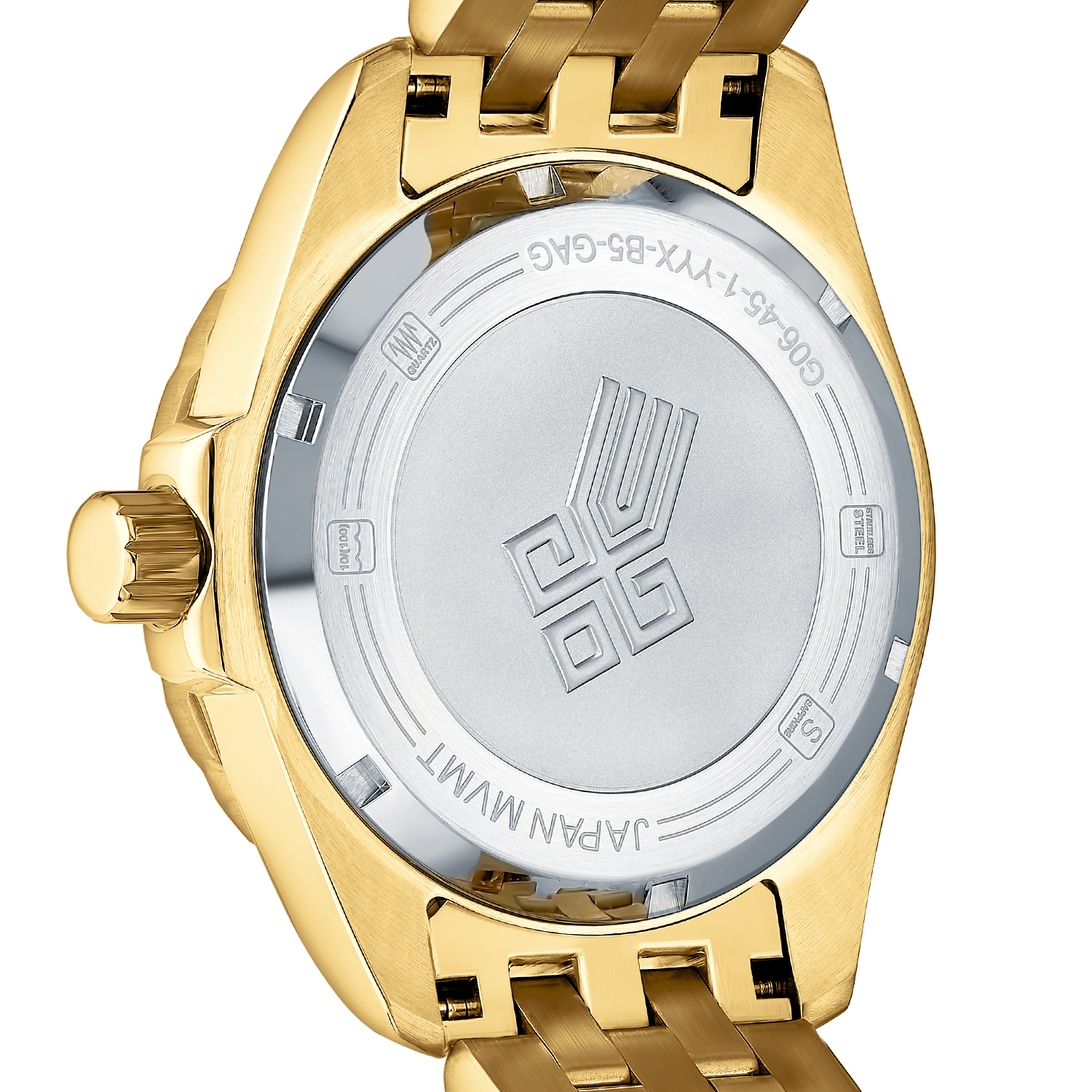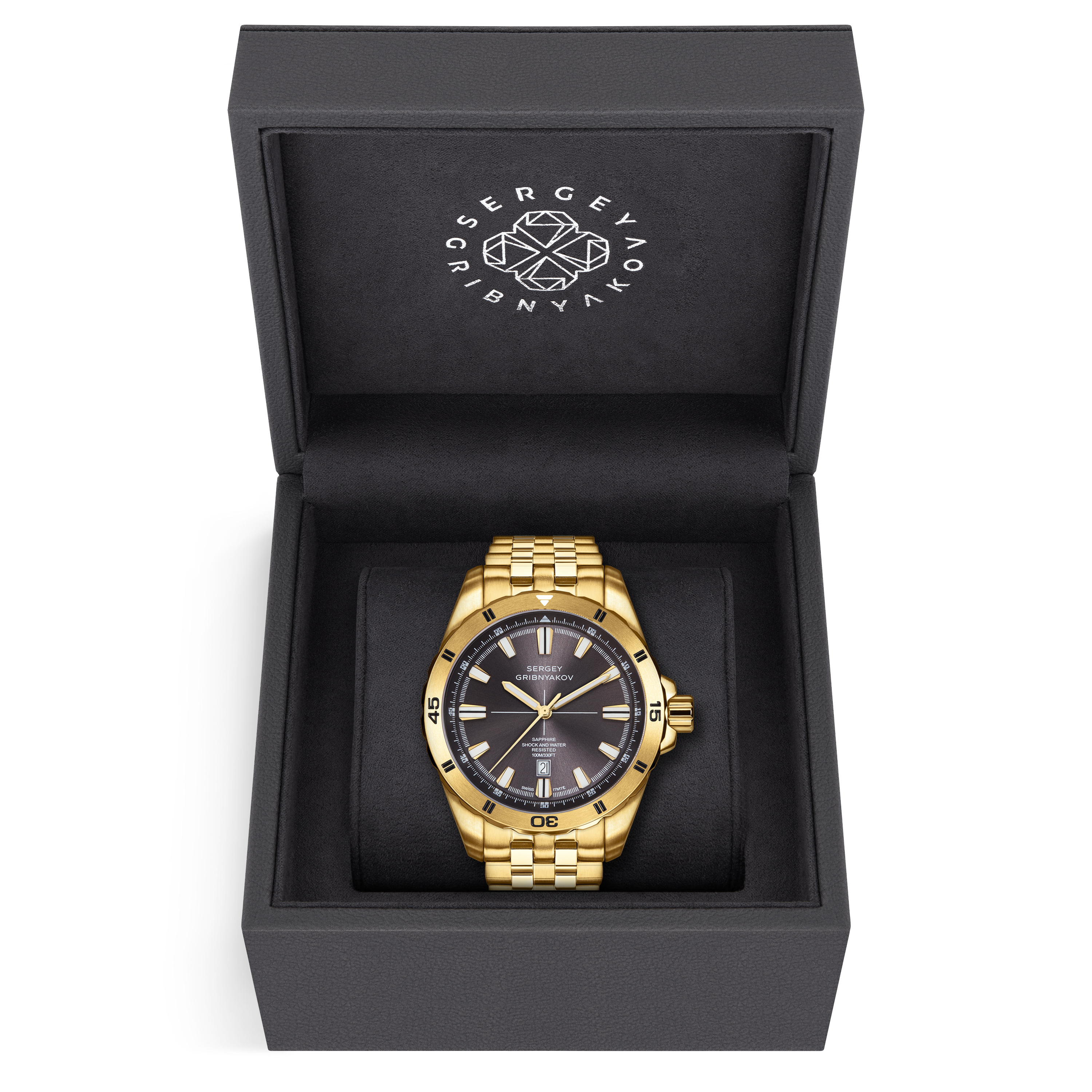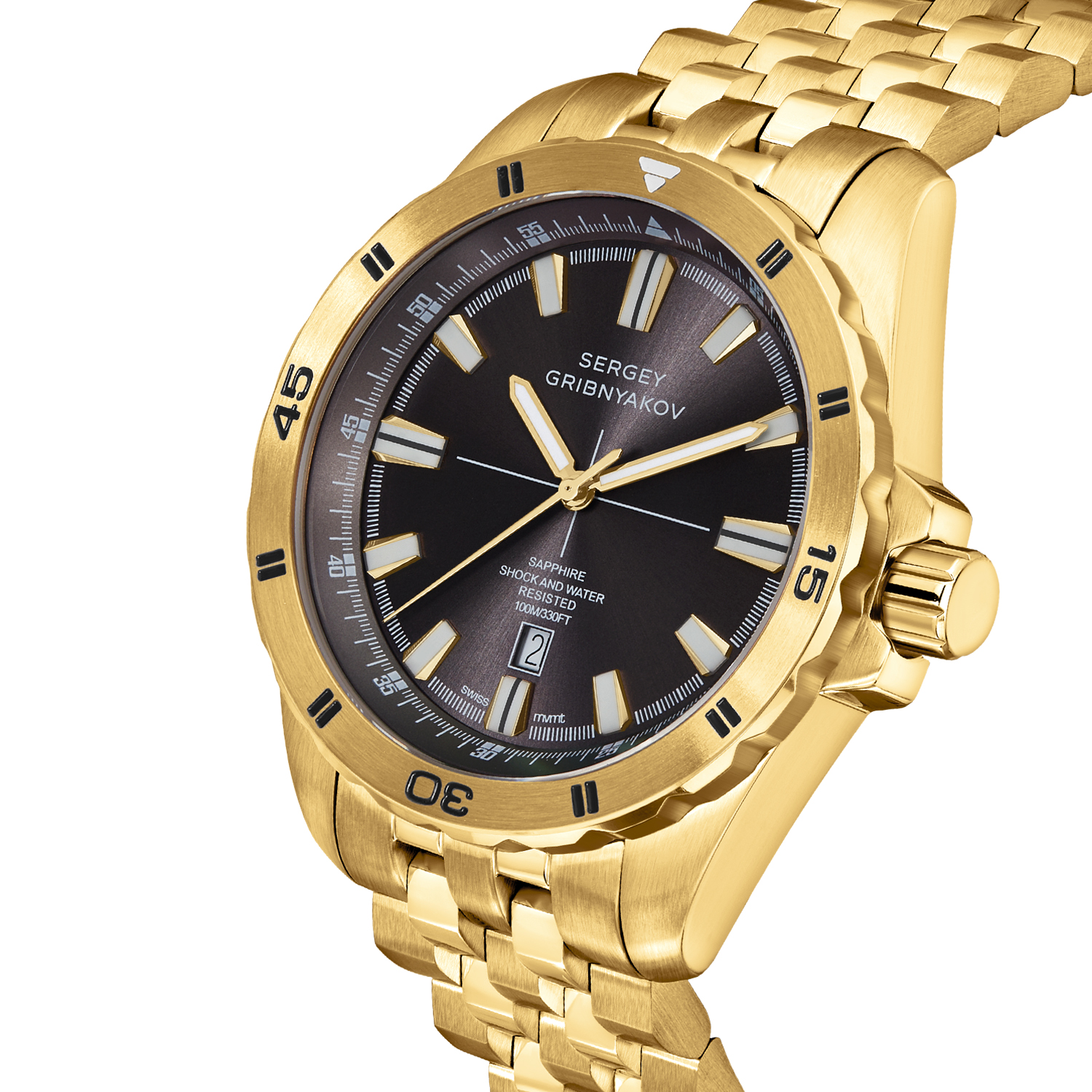 Корпус выполнен из стали 316L, сапфировое стекло с антибликом защищает циферблат от внешнего воздействия. Надежный швейцарский кварцевый механизм Ronda 515 оснащен функциями времени в 12 часовом формате, секундной стрелкой и датой. Водозащита 10 bar (100 m/330 ft)* позволяет плавать в часах.
