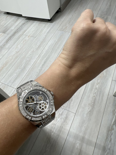 Часики просто супер, достаточно тяжеленькие! На солнце просто отлично сверкают!Доставка быстрая! Покупкой довольна!