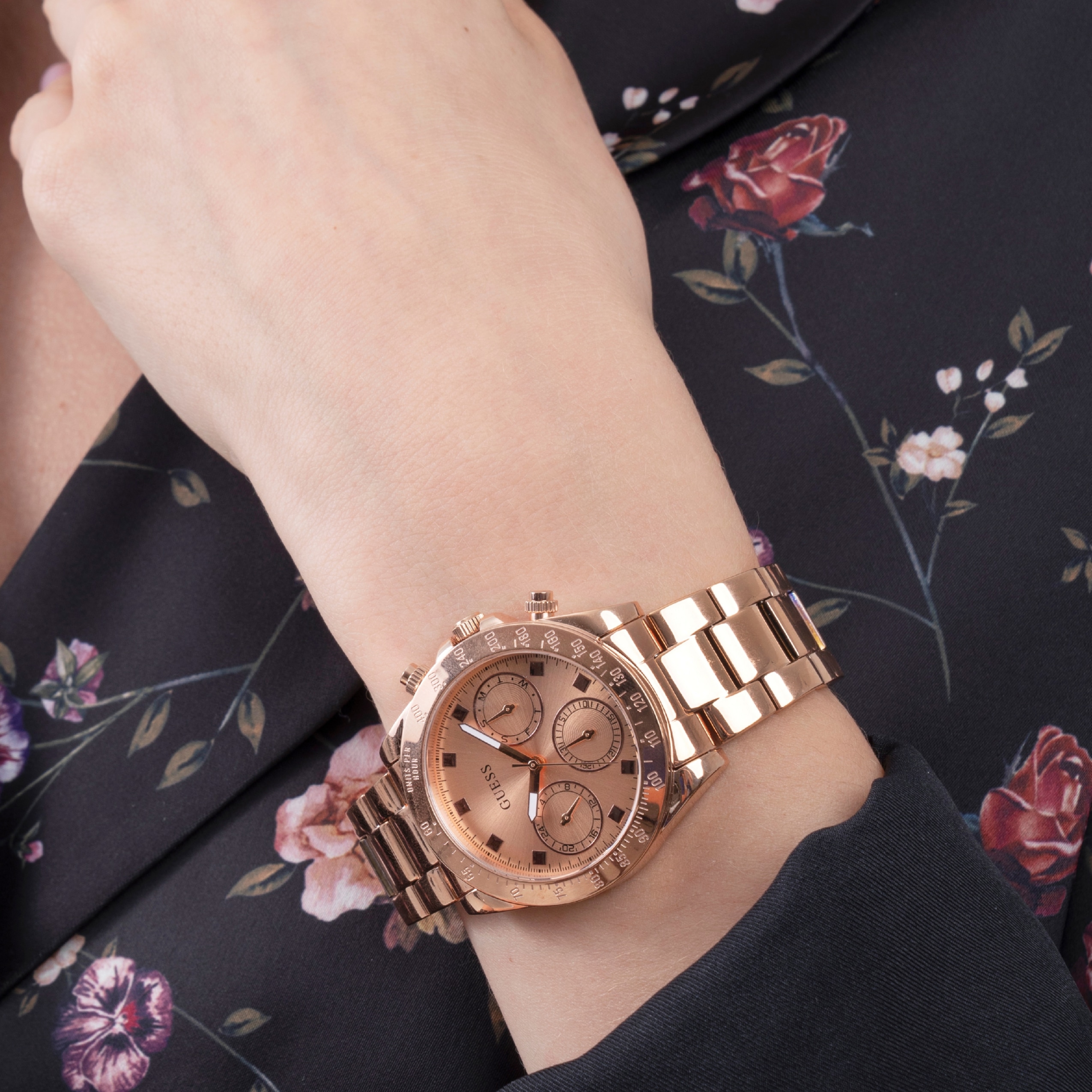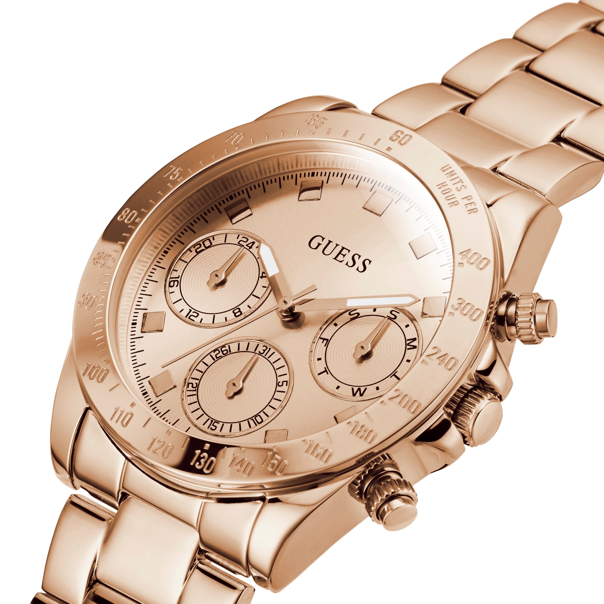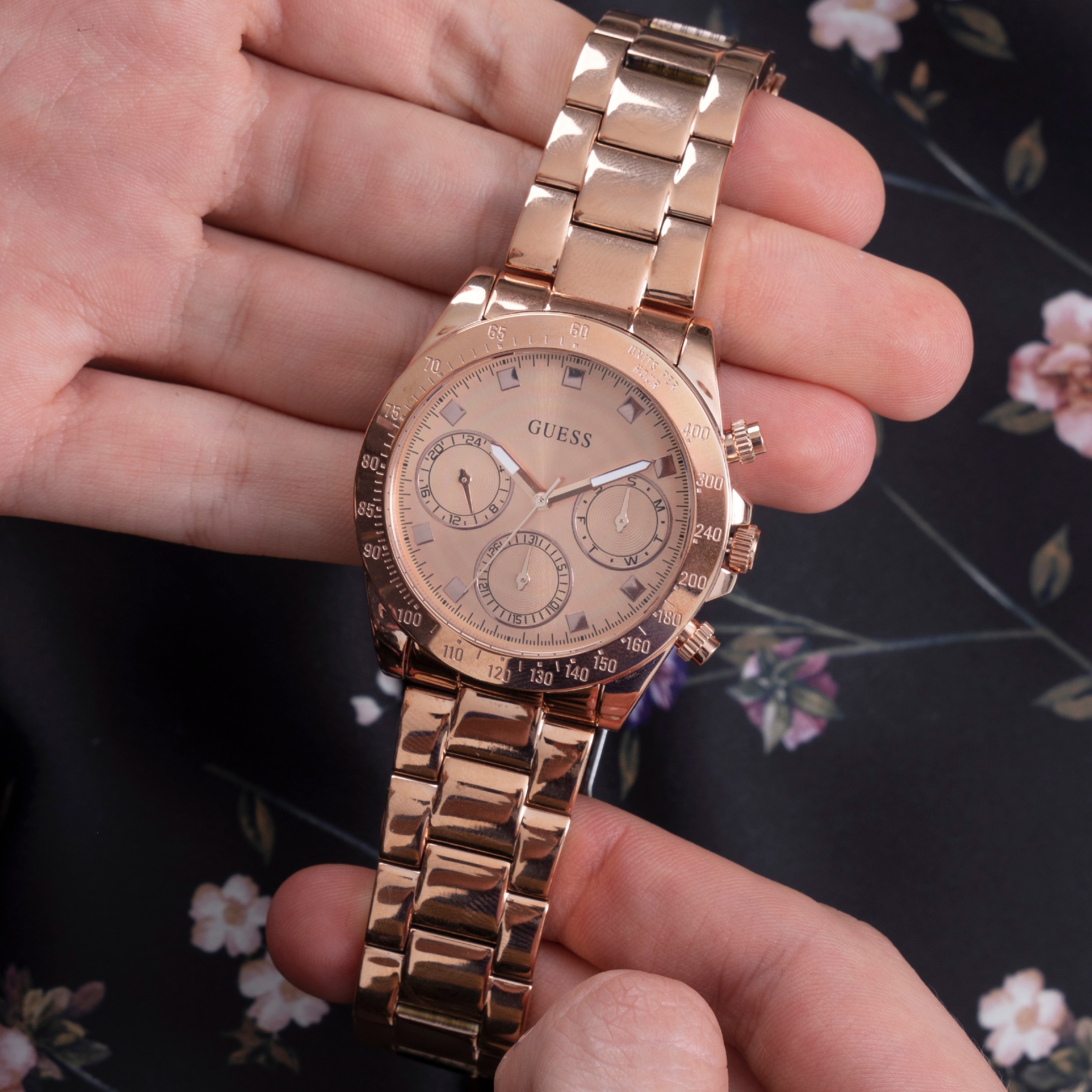 Женские наручные часы GUESS модель GW0314L3 из коллекции GUESS SPORT. Японский кварцевый мультифункциональный механизм VX9JE1S SEIKO (TMI) с вынесенными на отдельные циферблаты датой, днем недели и часовой стрелкой в режиме 24 часа использующий элемент питания SR927SW. Стальной корпус размера 38 мм. Минеральное стекло. Стальной браслет. Водостойкость 5 АТМ (мытье рук, дождь). GUESS – лидер в индустрии фешен часов по длительности присутствия на рынке и по ширине коллекции, ежегодно создает более 100 новинок. Компания GUESS Watches, основанная в 1984 году в Лос-Анджелесе (США) как пионер революции, возглавила трансформацию часов из простого инструмента для определения времени в стильный аксессуар. Бренд не боится экспериментировать. Разнообразные формы корпуса, сложно декорированные циферблаты, уникальный дизайн браслетов. GUESS – это про тренды и технологии в мире моды. Это яркие и дизайнерские часы, призванные угодить самым смелым фешн-драйверам и энтузиастам моды по всему миру. Страна-изготовитель: Филиппины. При изготовлении используются только надежные Японские механизмы. ВНИМАНИЕ! Заявленная водостойкость гарантируется только при плотно закрытой или закрученной заводной головке!