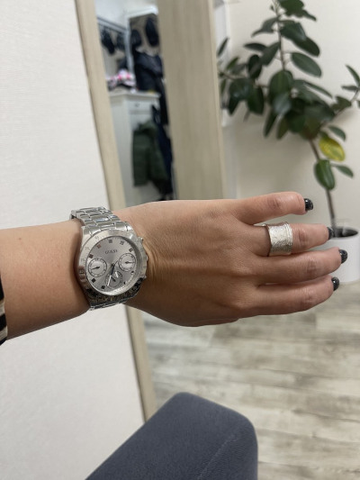 На руку 15 см убирала лишние 6 звеньев. Смотрятся шикарно и дорого, добротная сталь, оригинальное исполнение классической модели. Думала ,что циферблат будет меньше, но по факту то что надо.