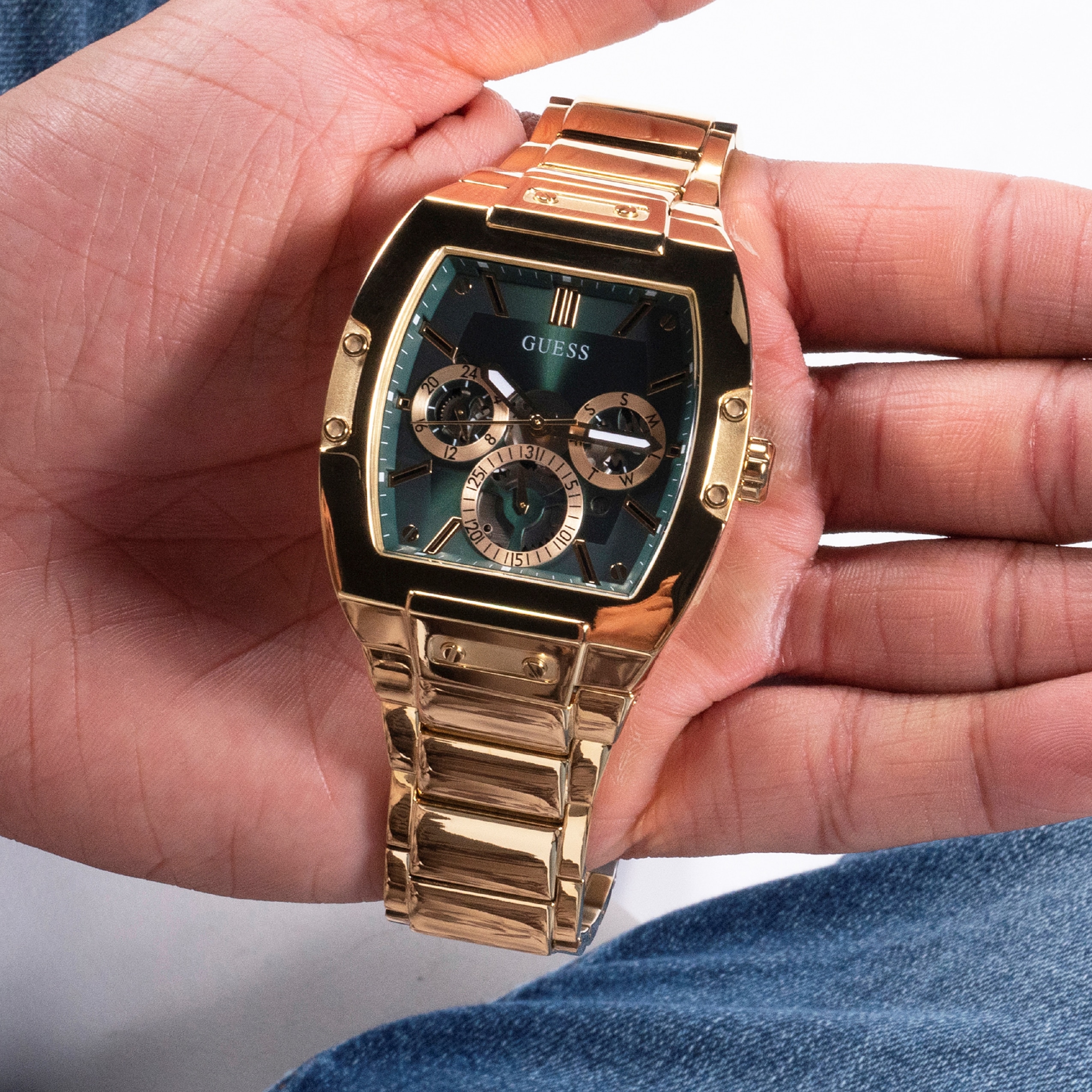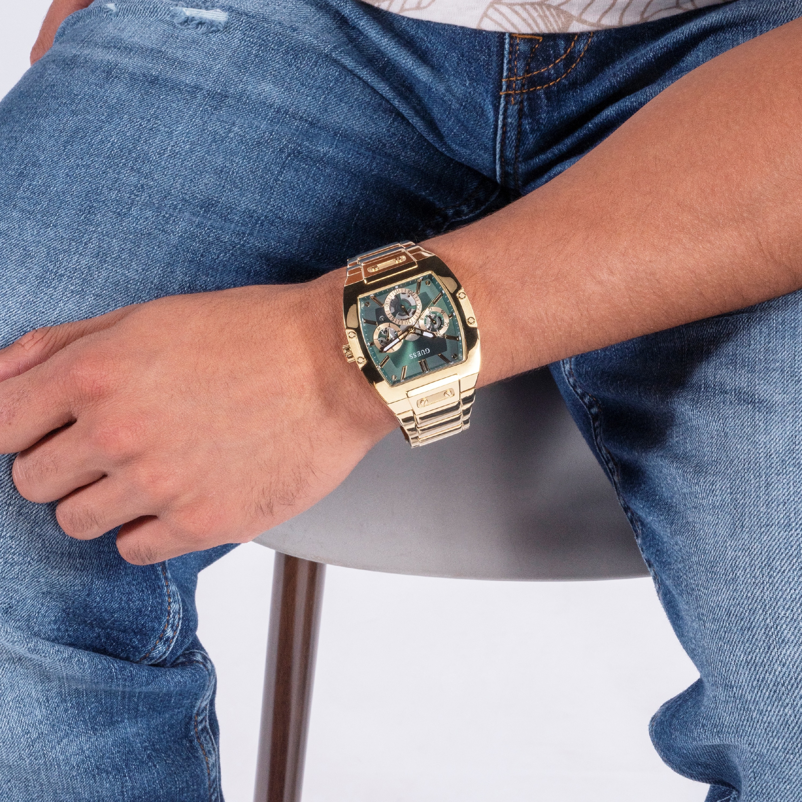 Мужские наручные часы GUESS модель GW0456G3 из коллекции GUESS DRESS. Японский кварцевый мультифункциональный механизм VX7JE1S SEIKO (TMI) с вынесенными на отдельные циферблаты датой, днем недели и часовой стрелкой в режиме 24 часа использующий элемент питания SR927SW. Стальной корпус размера 41.5 мм. Минеральное стекло. Стальной браслет. Водостойкость 5 АТМ (мытье рук, дождь). GUESS – лидер в индустрии фешен часов по длительности присутствия на рынке и по ширине коллекции, ежегодно создает более 100 новинок. Компания GUESS Watches, основанная в 1984 году в Лос-Анджелесе (США) как пионер революции, возглавила трансформацию часов из простого инструмента для определения времени в стильный аксессуар. Бренд не боится экспериментировать. Разнообразные формы корпуса, сложно декорированные циферблаты, уникальный дизайн браслетов. GUESS – это про тренды и технологии в мире моды. Это яркие и дизайнерские часы, призванные угодить самым смелым фешн-драйверам и энтузиастам моды по всему миру. Страна-изготовитель: Филиппины. При изготовлении используются только надежные Японские механизмы. ВНИМАНИЕ! Заявленная водостойкость гарантируется только при плотно закрытой или закрученной заводной головке!