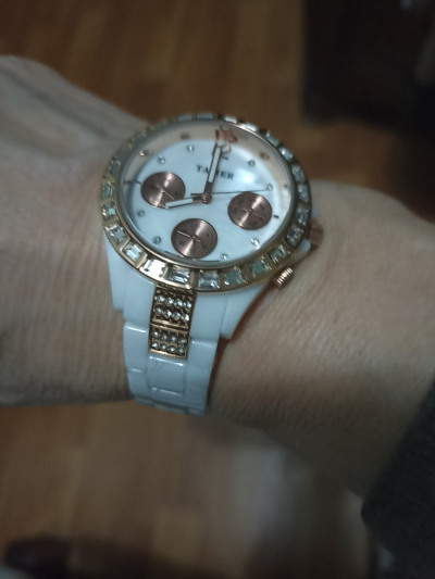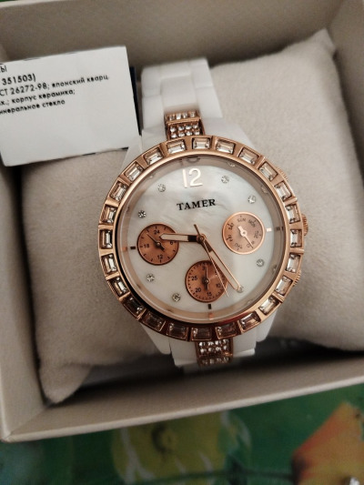 Часы на керамическом белом браслете- это то, что я давно хотела. Приобрела эти часы к своему дню рождения. Купила себе ,, новое время", для меня это символично! Пару звеньев из браслета придется удалить,, браслет чуть велик. . Рекомендую к приобретению.