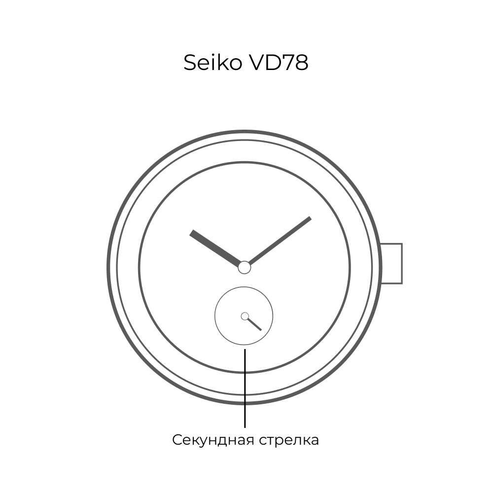 Корпус выполнен из стали 316L, минеральное стекло защищает циферблат от внешнего воздействия. Японский кварцевый механизм Seiko VD78 обеспечивает точность и оснащен функциями времени в 12 часовом формате. Водозащита 5 bar (50 m/165 ft)* позволяет мыть руки в часах, а так же защитит от брызг и дождя.