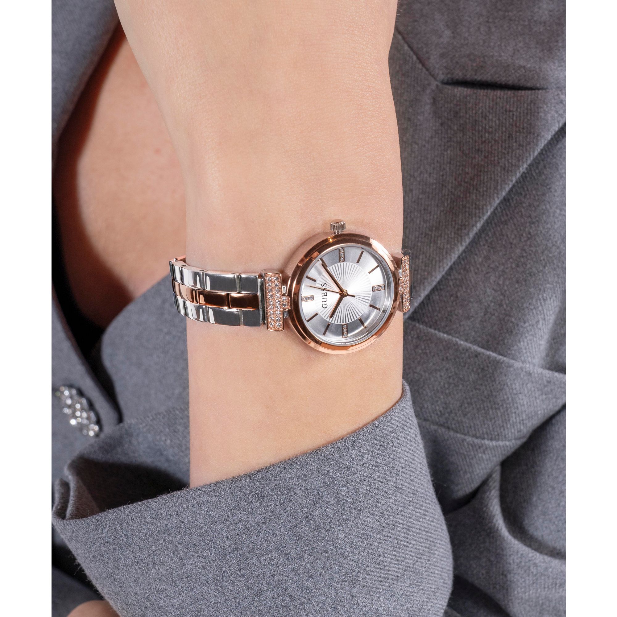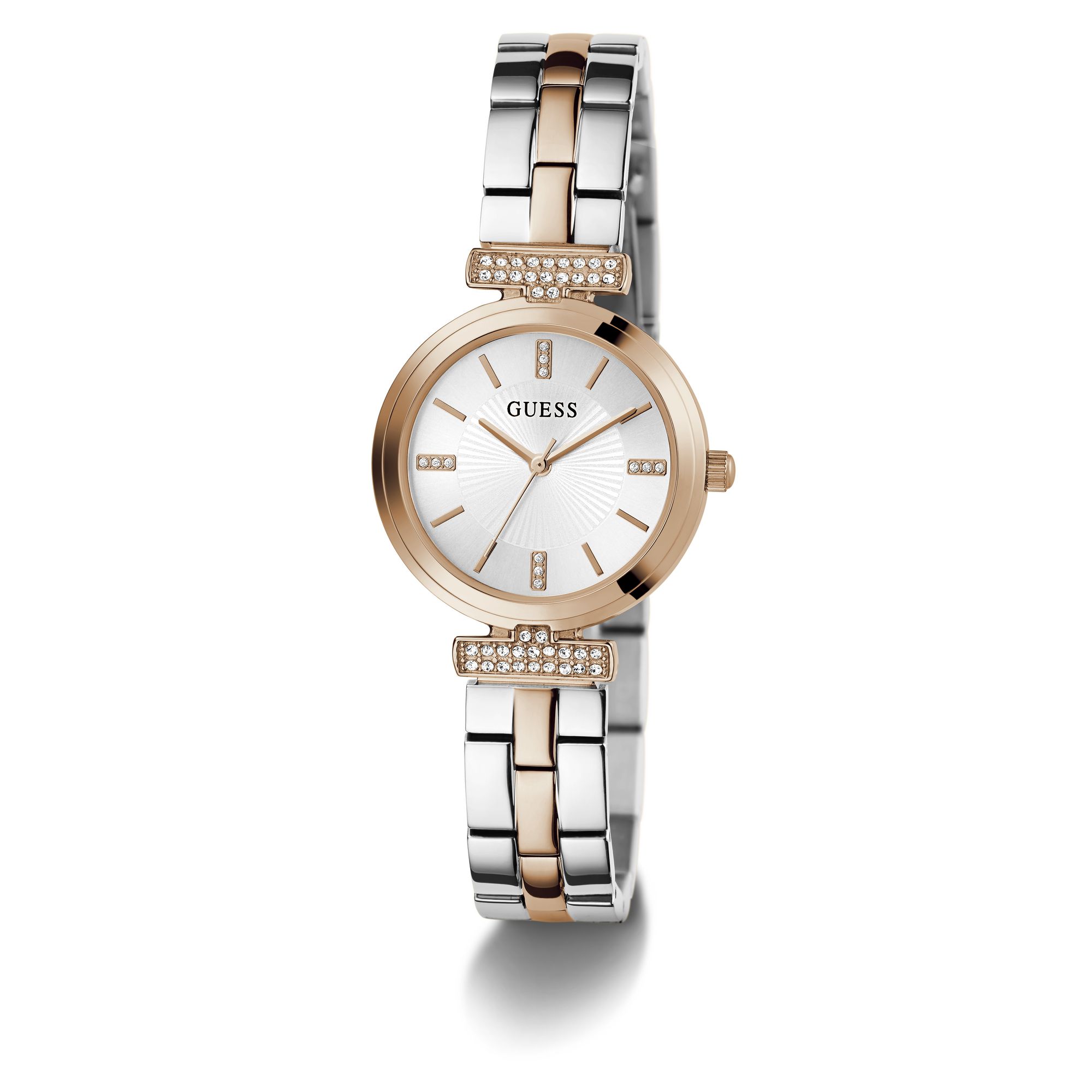 Женские наручные часы GUESS модель GW0762L4 из коллекции GUESS BEJEWELED. Японский кварцевый механизм Y121 SEIKO (TMI) использующий элемент питания SR626SW. Стальной корпус размера 28 мм. Минеральное стекло. Стальной браслет. Водостойкость 3 АТМ (защита от брызг). Остерегайтесь попадания часов в воду. GUESS – лидер в индустрии фешен часов по длительности присутствия на рынке и по ширине коллекции, ежегодно создает более 100 новинок. Компания GUESS Watches, основанная в 1984 году в Лос-Анджелесе (США) как пионер революции, возглавила трансформацию часов из простого инструмента для определения времени в стильный аксессуар. Бренд не боится экспериментировать. Разнообразные формы корпуса, сложно декорированные циферблаты, уникальный дизайн браслетов. GUESS – это про тренды и технологии в мире моды. Это яркие и дизайнерские часы, призванные угодить самым смелым фешн-драйверам и энтузиастам моды по всему миру. Страна-изготовитель: Филиппины. При изготовлении используются только надежные Японские механизмы. ВНИМАНИЕ! Заявленная водостойкость гарантируется только при плотно закрытой или закрученной заводной головке!