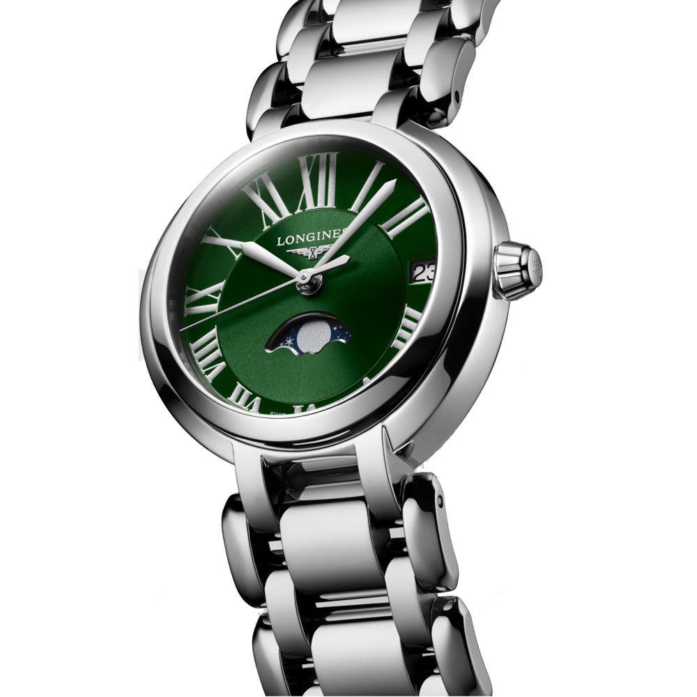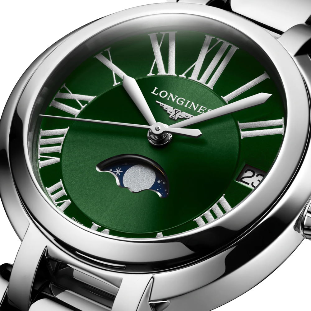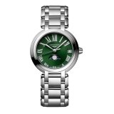 Женская модель часов из коллекции LONGINES PRIMALUNA L81154616 с водозащитой 3 bar (30 m/99 ft). Диаметр корпуса 30,5 мм, толщина 9,3. Вес 93,6 г. Корпус круглой формы, задняя крышка-хлопушка и браслет шириной 7 мм выполнены из нержавеющей стали. Элемент питания RENATA 371. Часовой механизм LONGINES L152. Устойчивое к царапинам сапфировое стекло с многослойным антибликовым покрытием изнутри. Данная модель оснащена функциями отображения часов, минут, секунд и даты. Кроме того модель оснащена указателем фаз Луны в положении «6 часов» и функцией индексации заряда батареи E.O.L.. Часы выполнены в элегантном серебристом корпусе . Цвет браслета серебристый. Цвет циферблата зеленый. Остерегайтесь попадания часов в воду. ВНИМАНИЕ! Заявленная водостойкость гарантируется только при плотно закрытой или закрученной заводной головке! Швейцарская точность и надёжность, проверенные временем, с международной гарантией от производителя 24 месяца.