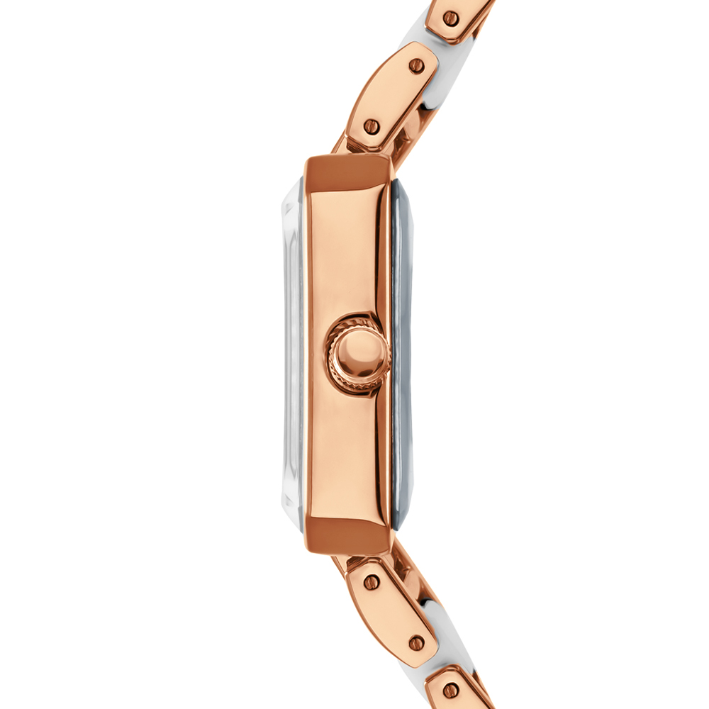 Линия модных женских часов. Яркий дизайн в сочетании с современными материалами делает их трендовым аксессуаром, украшающим любой образ. Корпус выполнен из керамики и металла*, минеральное стекло с антибликом защищает циферблат от внешнего воздействия. Японский кварцевый механизм Seiko VJ21 обеспечивает точный ход и оснащен функциями времени в 12 часовом формате. Водозащита 5 bar (50 m/165 ft) защитит от брызг и дождя.