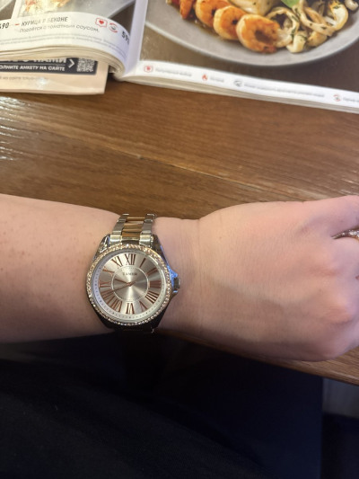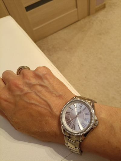 Женские часы, в классическом стиле. На руке смотрятся массивно, круто. Камушки блестят, но находится не под стеклом. А это минус.