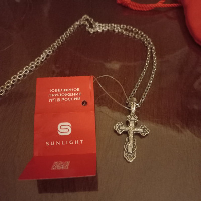 Давно искали крестик, пересмотрели по всех ювелирных магазинах, только в санлайт нашли подходящий, суну понравился , сразу купили и цепочку там