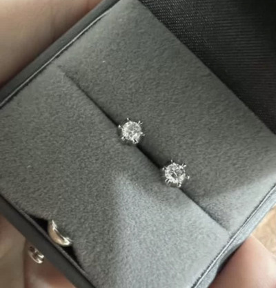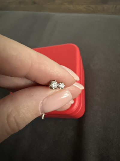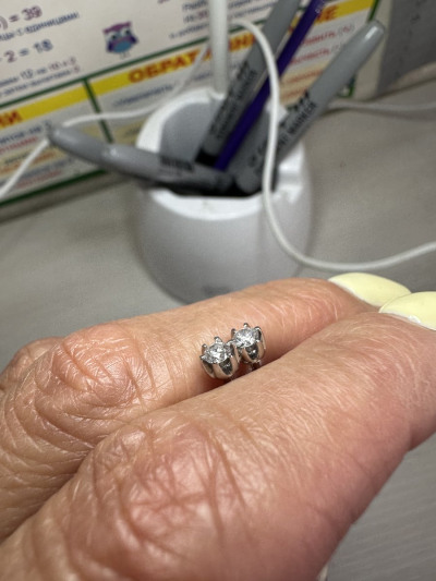 Серьги с 2 бриллиантами природными, 0.2 карат, огранка круг 57 граней, цвет 3, чистота 6, тип огранки А;
