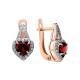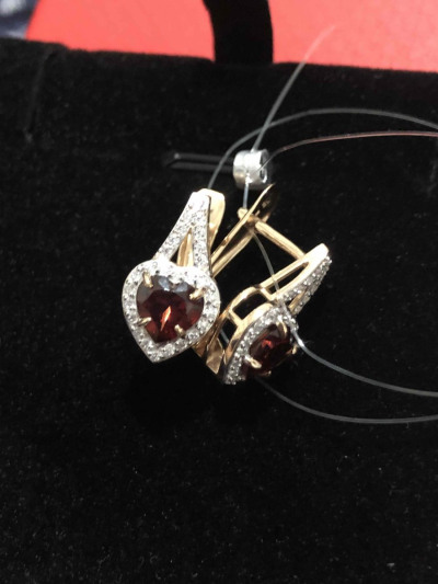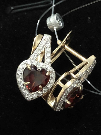 Золотые серьги с фианитами и гранатами природными