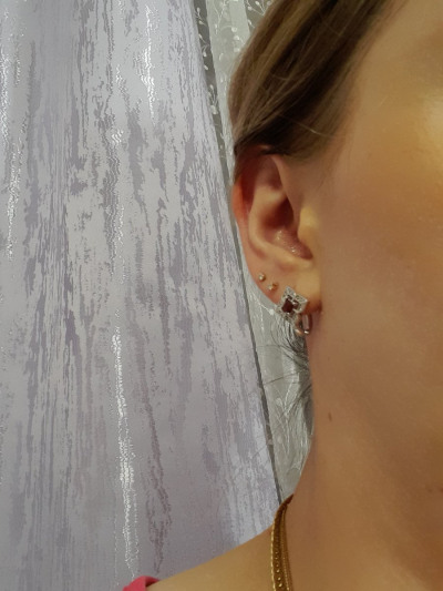 Просто шикардосные!Как я хотела! Серьги серебром,фианитами и гранатом,не близко к мочке