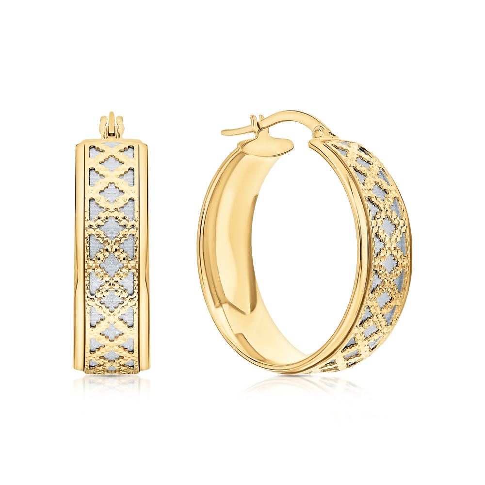 Яркие серьги в лимонном золоте. Производство италия.Ажурный арнамент на фоне белого золота выделяет их нежность настоящего ювелирного исскуства.
