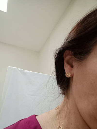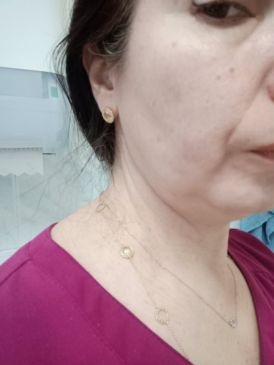 Серьги симпатичные, нежные, подходят к шейному украшению из этой же серии отлично. Не носила гвоздики в основном проколе, поэтому надо привыкать. Заклепка на гвоздика без винта, под честное слово производителя так сказать