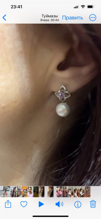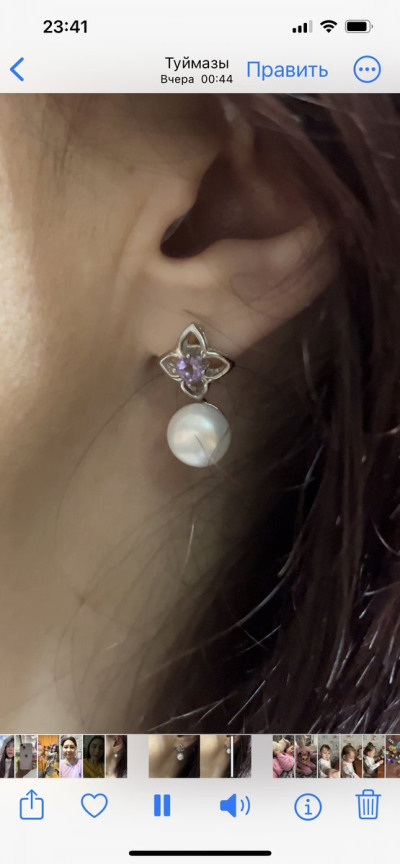 Серьги очень красивые , жемчуг крупный культивированный белый ,аметист фиолетовый яркий, очень нежно смотрится Рекомендую