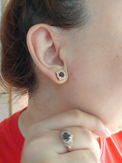 Сделала себе подарок на день рождения. Подобрала себе серьги к своему колечку тоже с гранатами и фианитами. Теперь смотрятся как комплект. Огромное спасибо Магазину Санлайт. Сегодня хочу приобрести кольцо с цитрином.