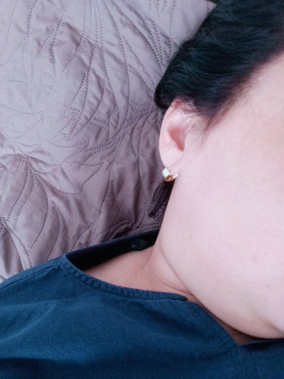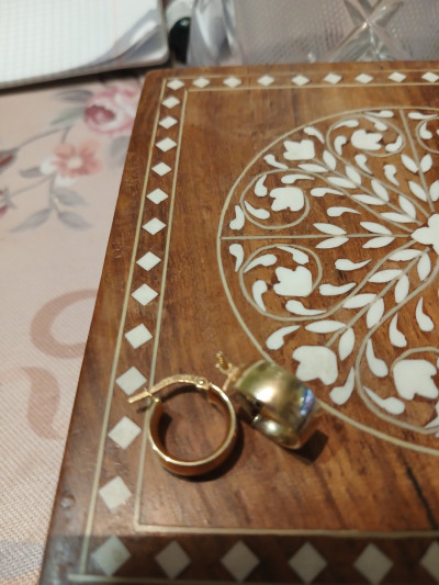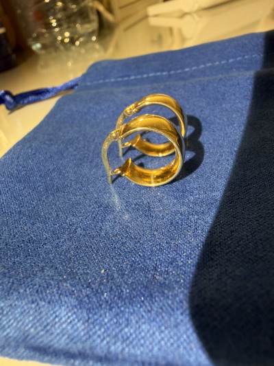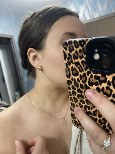 Серьги очень красивые. Освежают образ. Цепочка на шее и крестик тоже из желтого золота. Выглядят вместе чудесно🥹🥰😍 Спасибо большое! Ношу в течение 3 месяцев, всё отлично 👍🏼