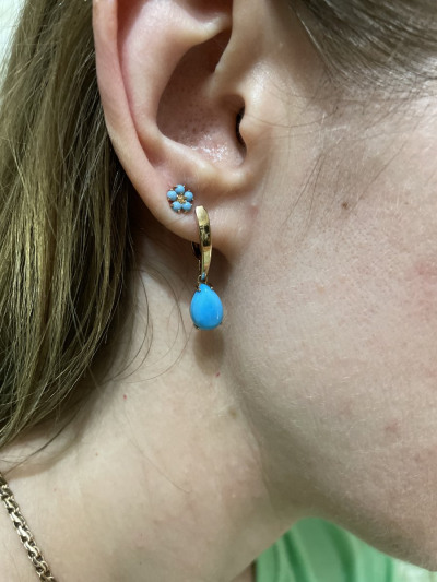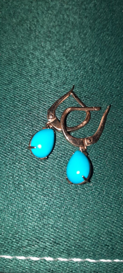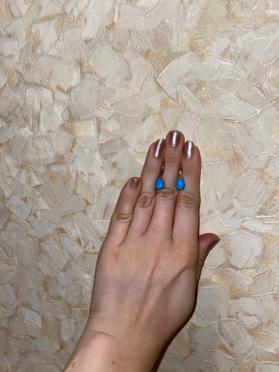 Замечательные серьги с бирюзой, очень удобные в носке. Хотелось бы приобрести еще подвеску с капелькой бирюзой , но отслеживаю ее уже больше года, ее так и не появилось снова в наличии, очень жаль.