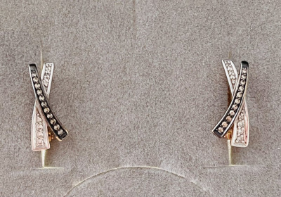 Золотые серьги с бриллиантами коньячными природными