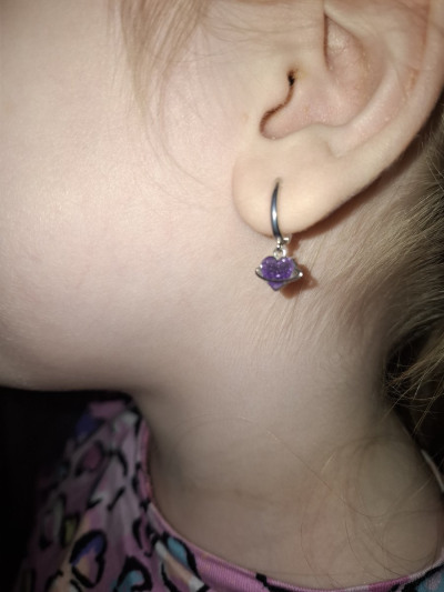 Дочке понравились эти серьги в магазине, но я готовила подарок, поэтому сразу не купила, оформила покупку через приложение. Пришли с дочкой в Рождество в магазин и заказ забрали. Очень красиво нам их упаковали в коробочку с бантиком, настоящий Рождественский подарочек! И подвеску в подарок еще дали за регистрацию в приложении. Оригинальная форма сердечек, красивый цвет. Замочки работают хорошо. У дочки прокол высоко и мочка крупная, ей прям тютелька в тютельку сели, хотя ей 7,5 лет. Еще нам понравились пуссеты сердечки с фионитами, будет дочке подарок на 8 Марта. Себе тоже присмотрела серьги-дорожки с камнями, завтра будет скидка, закажу).
