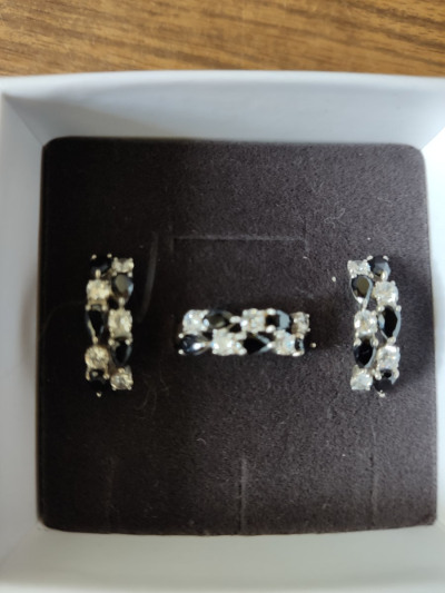 Брала комплект. Классическое черно-белое сочетание всегда найдёт применение. Серьги удобные, штифт занижен, скроет дефект, если он есть ( растянутый прокол ушка, например). При попадании лучей света игра камней завораживает. Рекомендую к покупке.