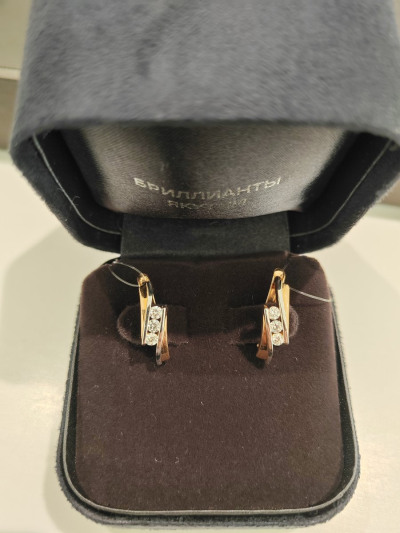 Серьги с 6 бриллиантами природными, 0.32 карат, огранка круг 57 граней, цвет 3, чистота 6, тип огранки А;
